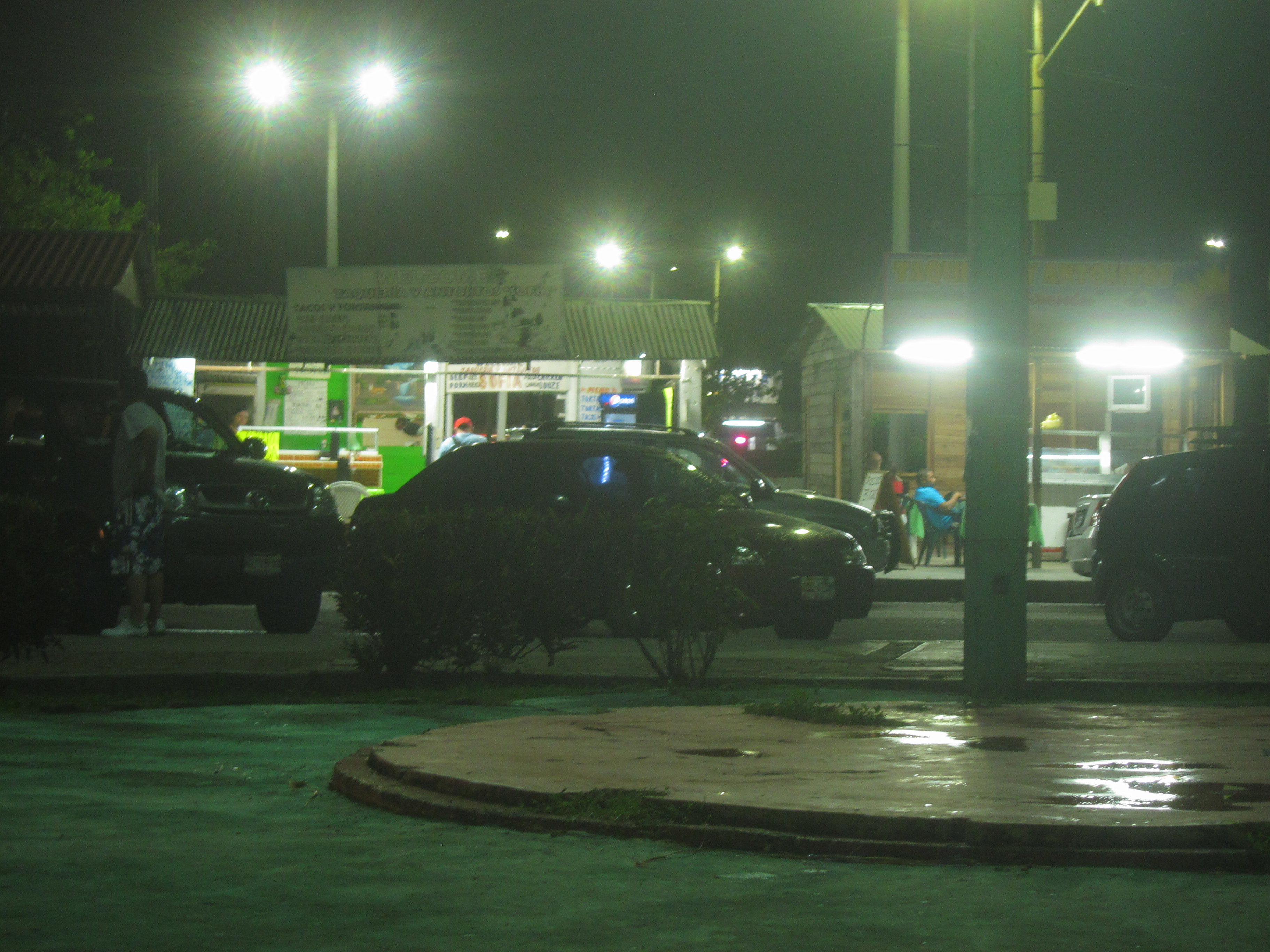 The next part was not so smooth.  I took a taxi from where the bus dropped us off to the bus station, but it was the wrong one.  I took another taxi to the right bus station, which was actually very near where the bus left us.  I bought my ticket at 6pm, and there was nothing left to do but wait.  The bus station was in a bit of a wasteland.  When I had passed through here in 2001 on my way to Tulum, and it had definitely seen better days.  The cafeteria was gone.  Three of the five shops were for rent.  leaving two mini marts. It was Sunday night, so anything nearby was closed, but for the tacqurias across the street.